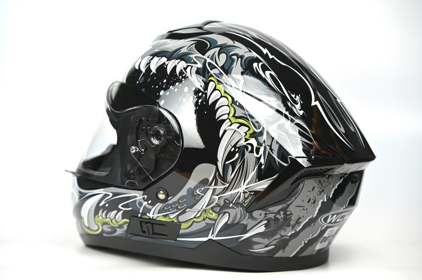 WCL Raider Full Face Motorcycle Helmet - Drop Down Tinted Visor, Quick Release Buckle, DOT Approved - Grey Black