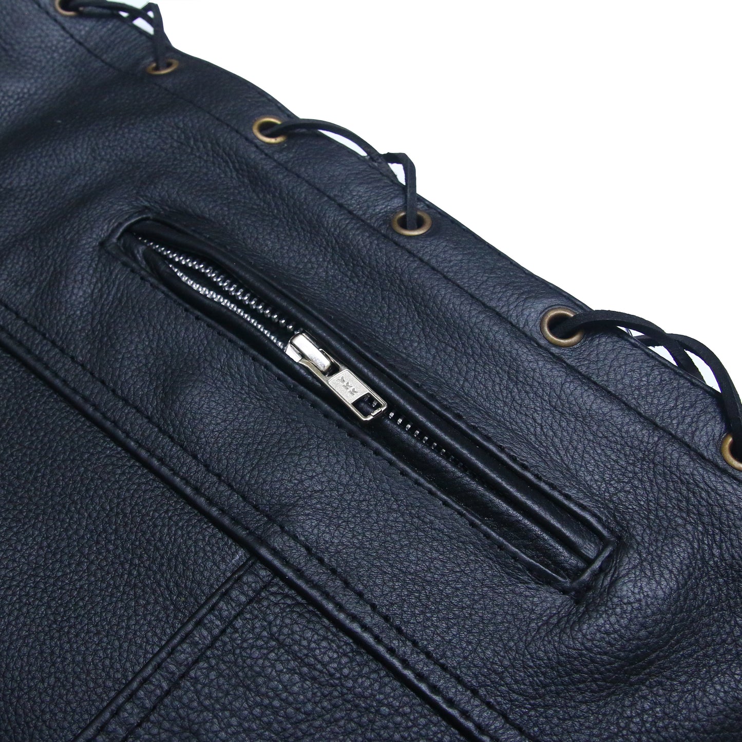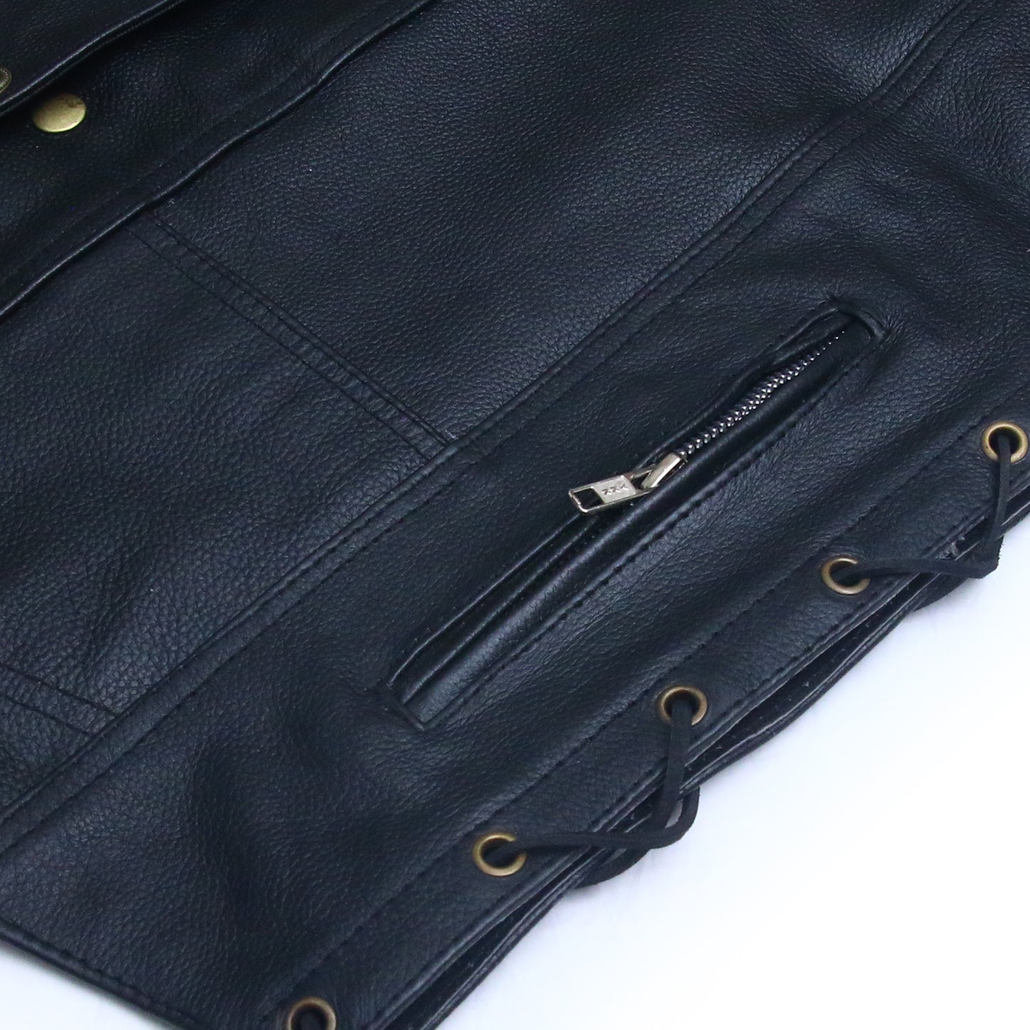• Two zippered slash pockets and two horizontal pockets, Two concealed carry pockets with bullet snaps and tapered holsters