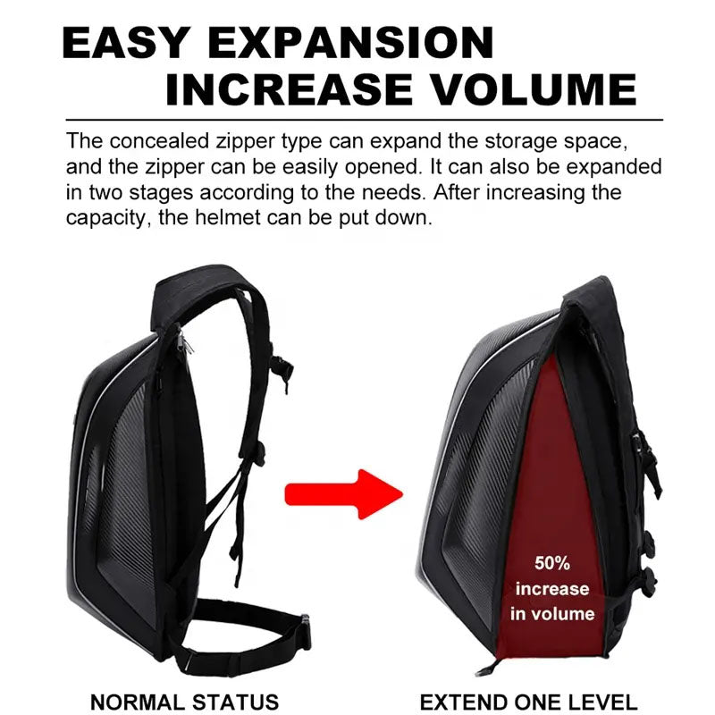 WCL Motorcycle Helmet Bag Waterproof Backpack Expandable Hard Shell