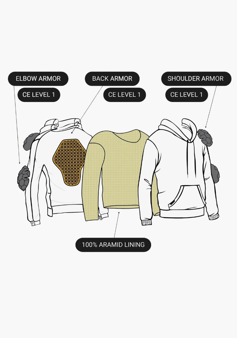 Usually gear is comfortable or protective but rarely both. The WCL Armoured Hoodie lets you ride looking how you want to and gives you that extra layer of protection that you sometimes go without. Built with Dupont Kevlar-lined imact zones, allows rider to ride functionally and live fashionably.
