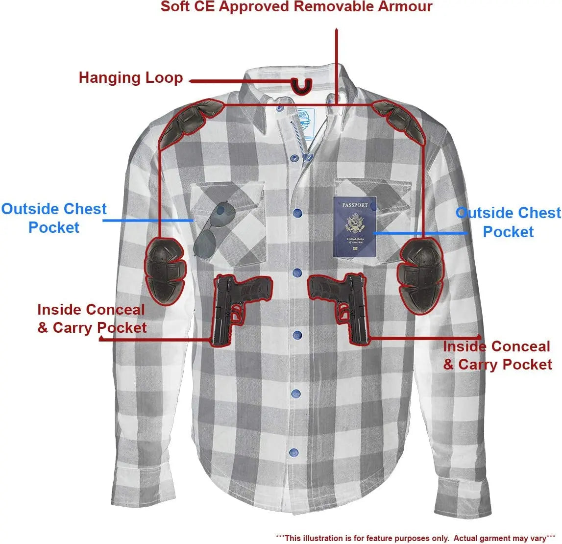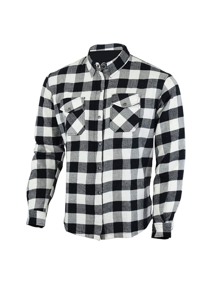 WCL Kevlar Lined Performance Motorcycle Riding Long Sleeve Flannel Shirt W/T CE Level 1 armor - White
