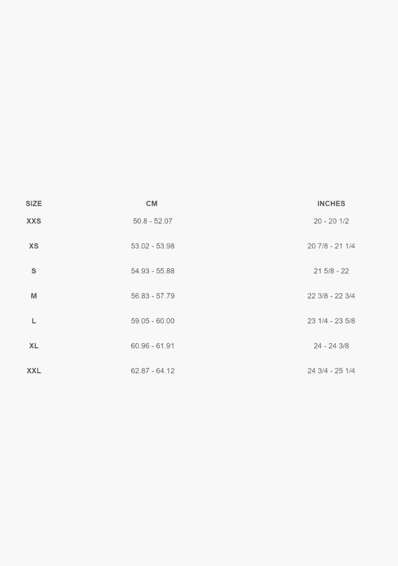 Please follow our sizing chart to ensure a correct fit. Measure from above your eyebrows around to the back of your head and back then choose the size that most closely matches your head circumference.