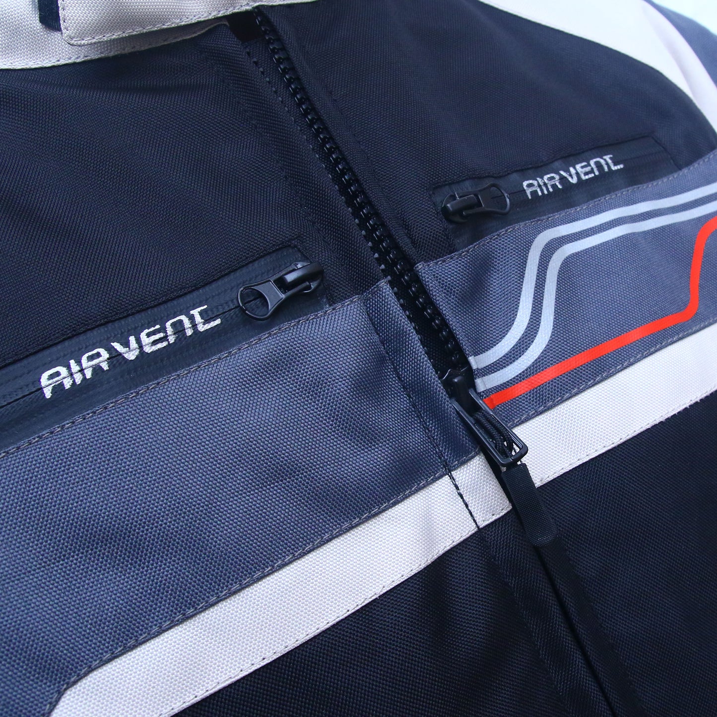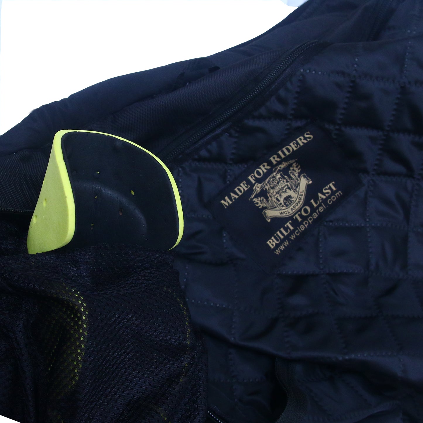 The jacket comes equipped with removable low profile C.E. approved shoulder and elbow protectors as well as a dual density spine pad.