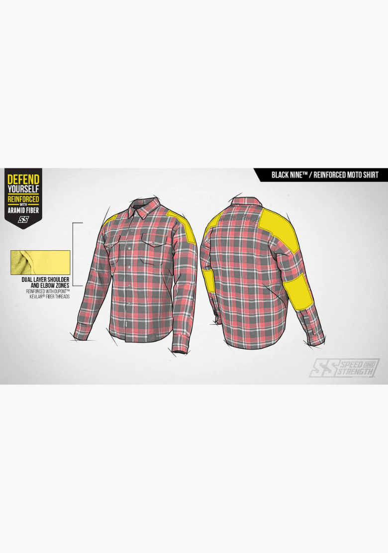 Usually gear is comfortable or protective but rarely both. The Black 9 Moto Flannel lets you ride looking how you want to and gives you that extra layer of protection that you sometimes go without. Built with Dupont Kevlar-lined imact zones, a hidden zipper behind the snaps, and a snap down collar make the Black 9 Moto Shirt ride functional and life fashionable.