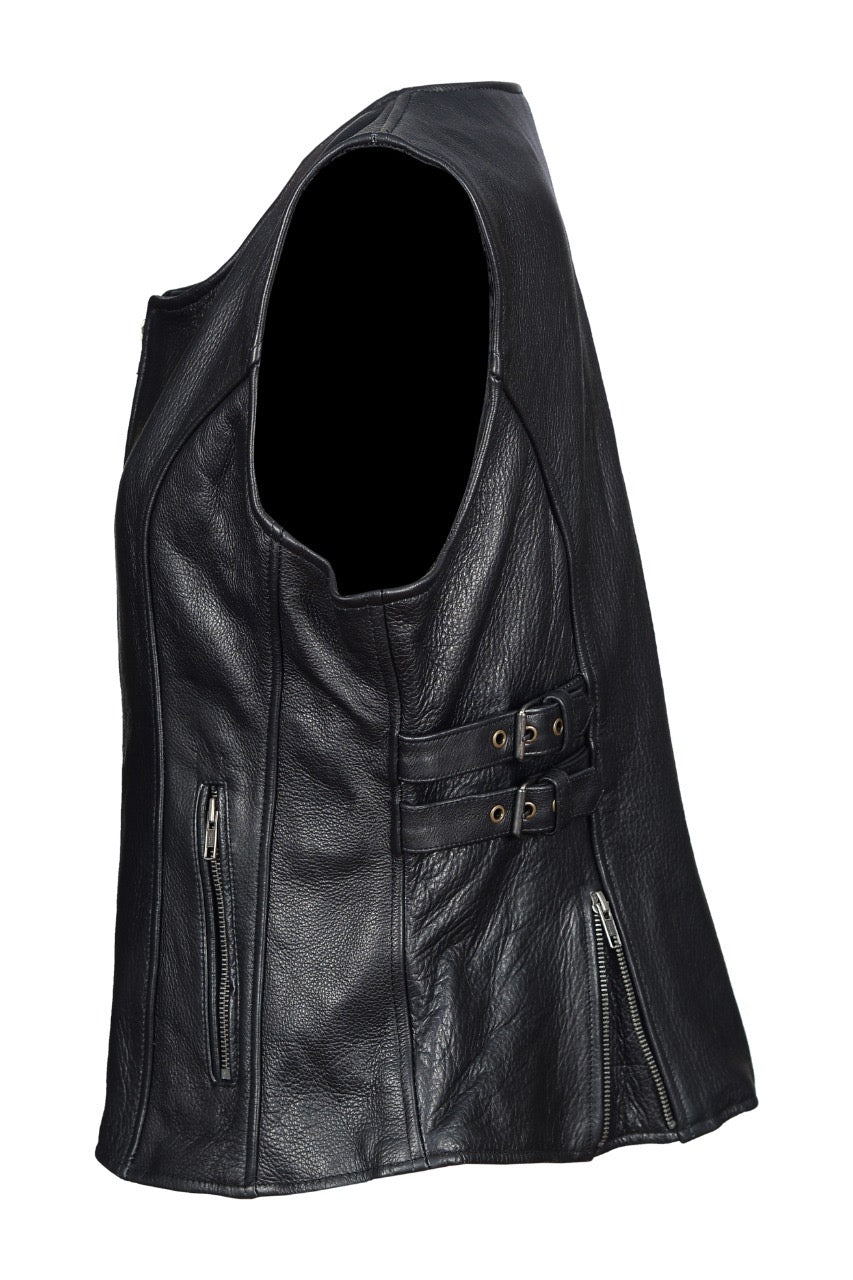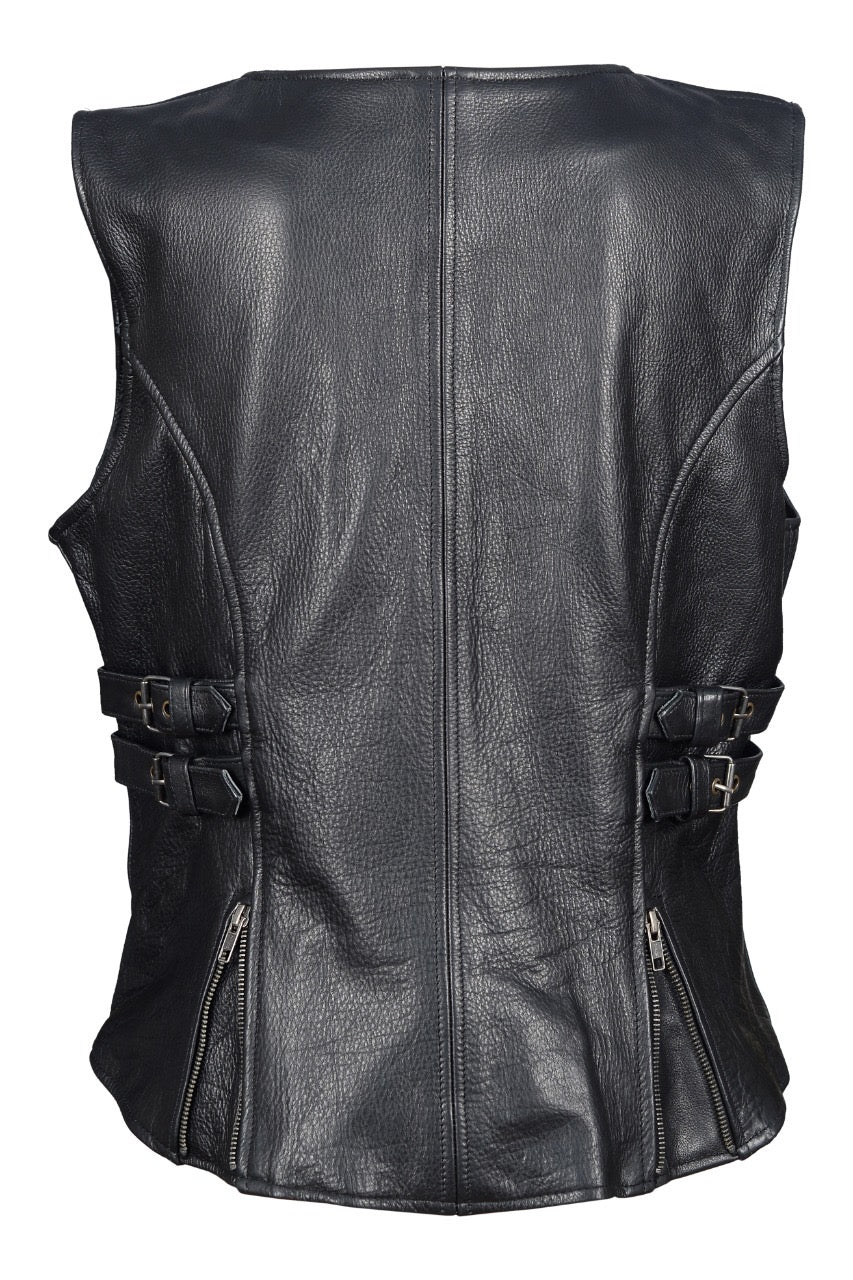 If you are looking for a stylish Women's leather vest then this leather corset style vest is perfect for you. Equipped with 2 zipper outside pockets and 2 inside gun pockets, you will be more than prepared when you are on the go
