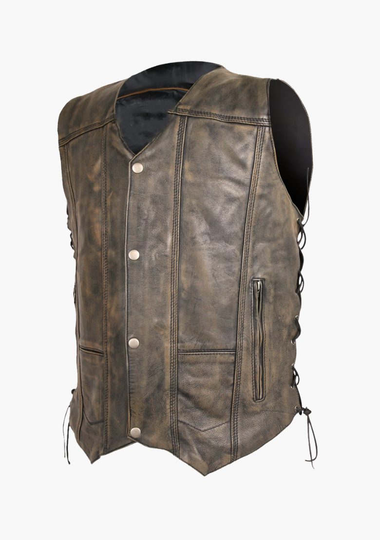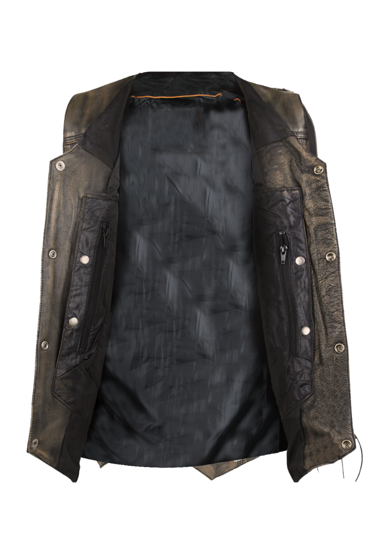 If you are looking for a vest with a unique look that can more than accommodate those extras then the Distressed Brown Ten Pocket Cowhide Leather Vest is perfect for you. Equipped with 4 outside pockets and 6 inside pockets, you will be more than prepared when you are on the go.