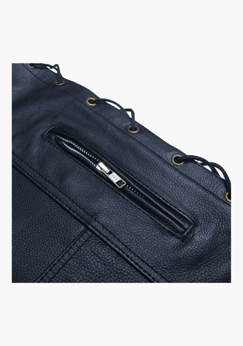 - Two zippered slash pockets and two horizontal pockets, Two concealed carry pockets with bullet snaps and tapered holsters