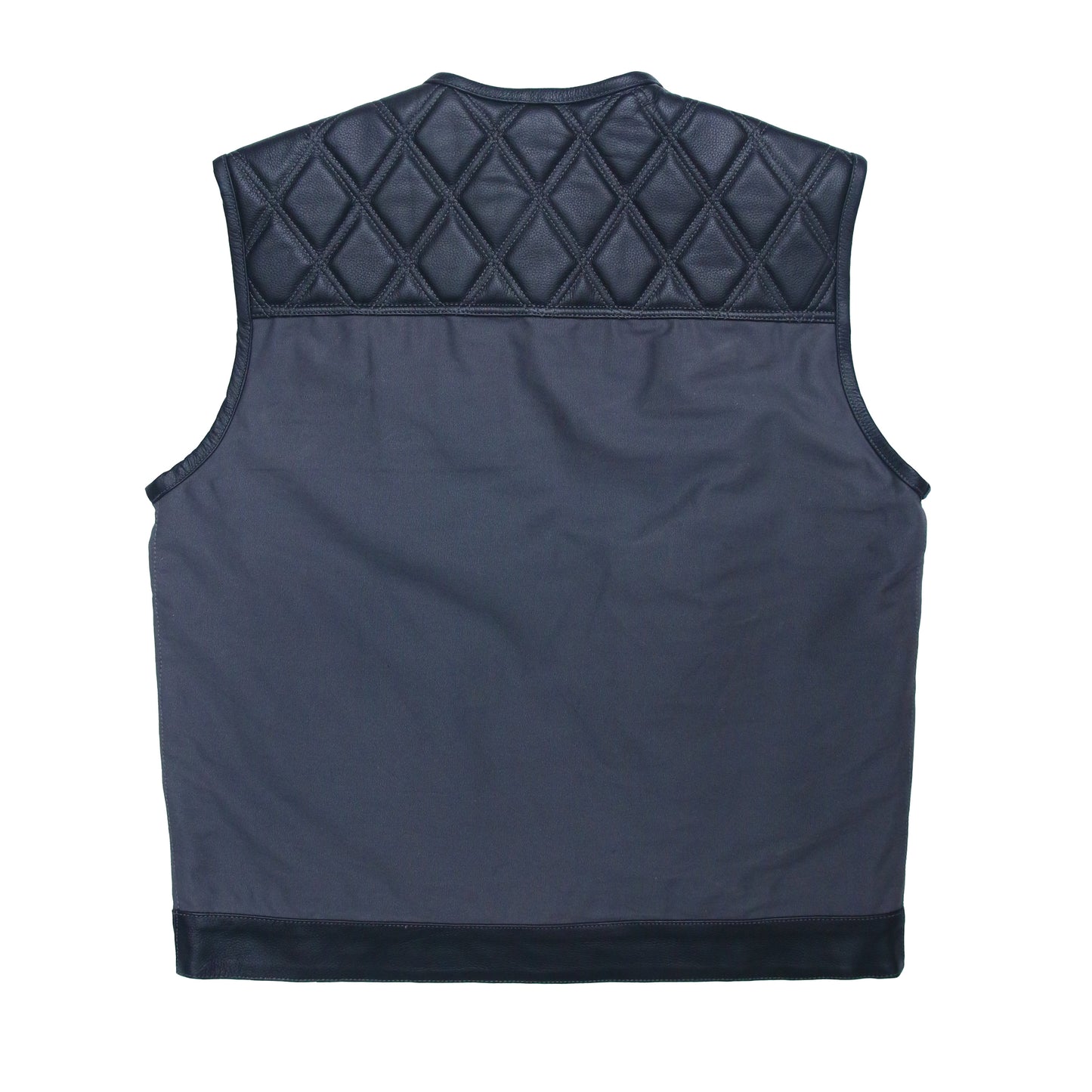 WCL Hybrid Canvas Leather Club Vest w/t Navy Blue Quilted Leather