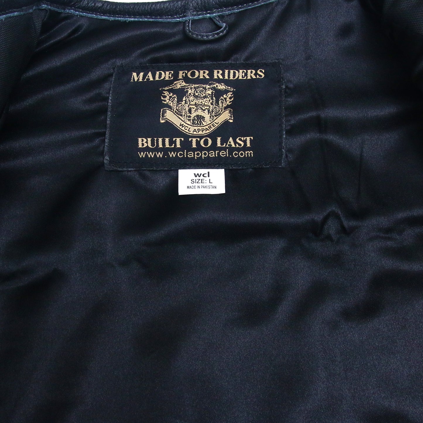 This vest exudes quality! The leather is supple, the stitching is precise, and the blue canvas detailing is a nice touch. It's evident that WCL Helmet Inc takes pride in their craftsmanship. I couldn't be happier with my purchase.