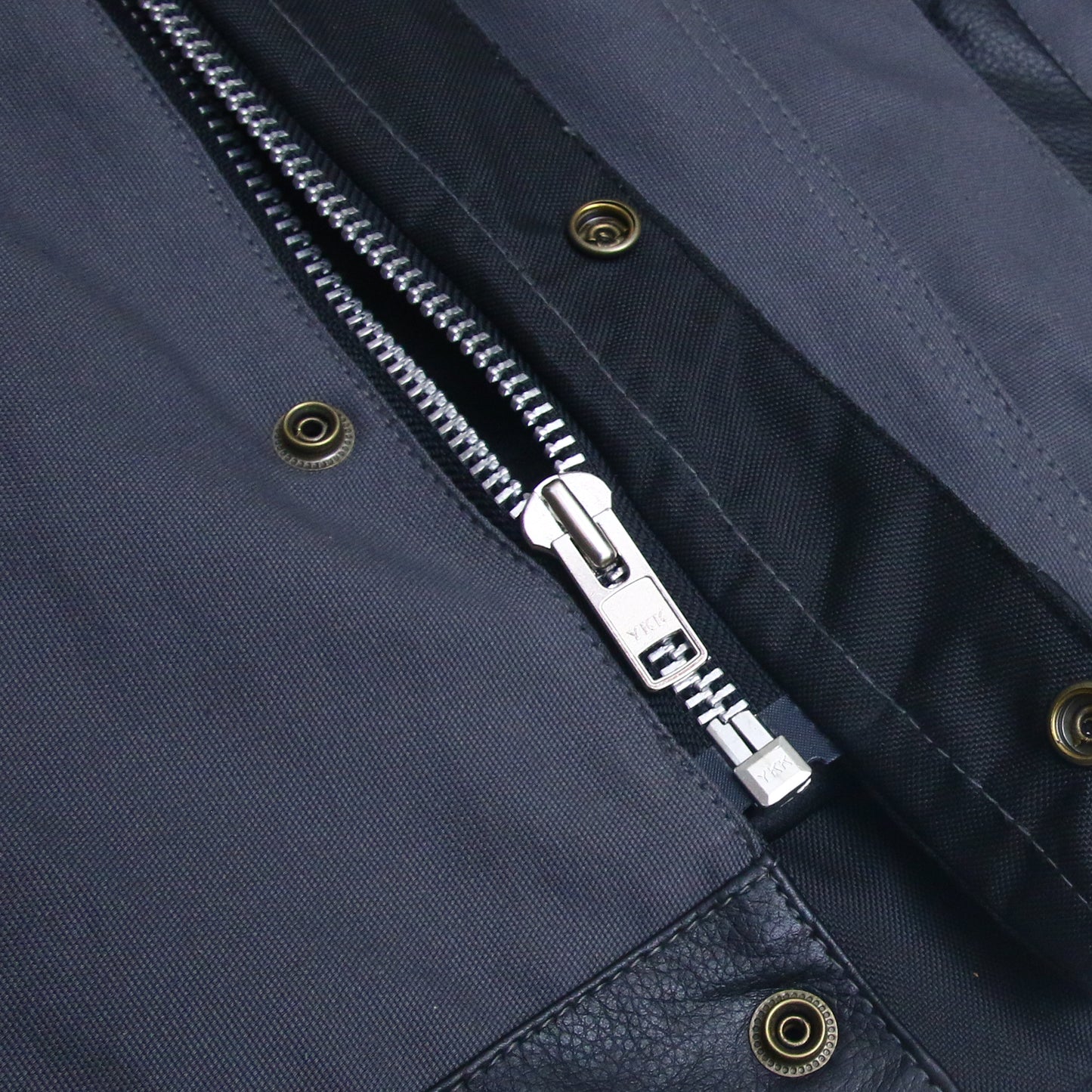 This vest is simply beautiful! The black leather paired with the blue canvas creates a striking contrast. The fit is perfect, and the quality is exceptional. I've received numerous compliments whenever I wear it. Thank you, WCL Helmet Inc!