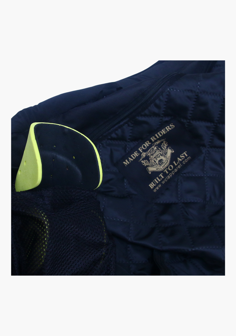 The jacket comes equipped with removable low profile C.E. approved shoulder and elbow protectors as well as a dual density spine pad.